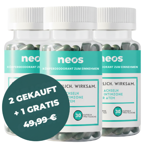 Neos ist ein innovatives Nahrungsergänzungsmittel in Kapselform, das Körpergerüche von innen heraus neutralisiert und beseitigt.